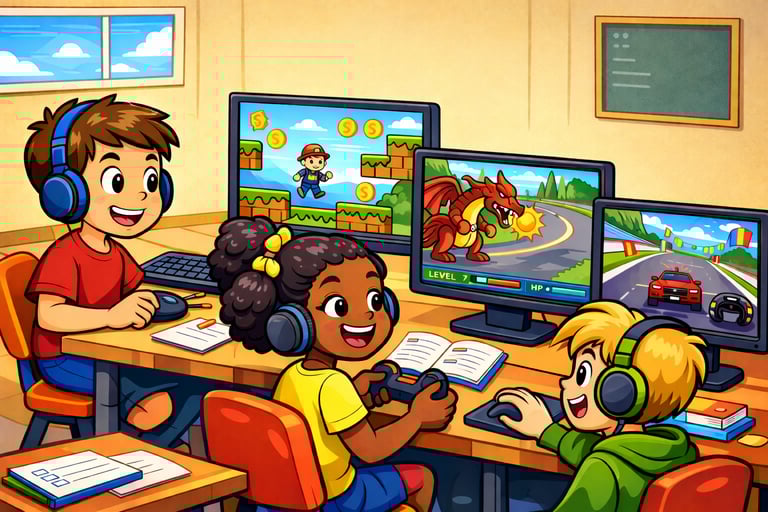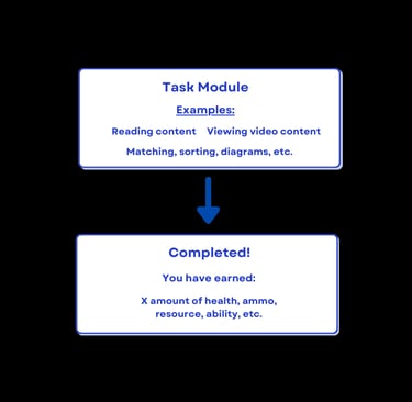 Students complete the questions and/or tasks to earn in-game rewards. After earning the rewards, students go back to normal gameplay. This process repeats. Students play the games and periodically answer questions or complete educational tasks to earn benefits.